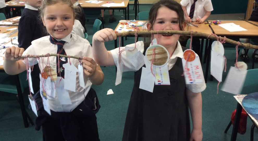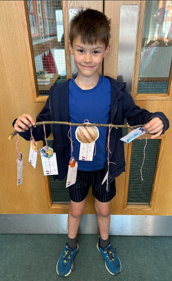 Today the children created their own planet mobile. The children learnt about the planets in the solar system and recapped numbers and colours in french. In the afternoon they watched a play all about a trip to space which was done in both french and English - ‘Le Ticket pour L’Espace’